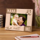 Celebrate the special bond between grandma and her grandchild with this beautifully crafted wooden photo frame. Featuring thick, bold engraving, the word "Nana" is showcased in the top corner, while "Me" is elegantly placed in the opposite bottom corner. A delicate heart joined by an "&" sign symbolize love and connection.