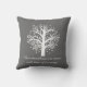 Special Keepsake Throw Pillow for Nana! White Tree on charcoal grey pillow with Names & Dates for children & grandchildren. Base of the trunk says "Nana's Flock", but you can customize with any name/title. Nine colourful birds in the tree, with room to add names and birthdays for up to nine grandchildren. Back of Pillow has the same white tree, and below the tree, the following text: Grandmothers are moms with lots of frosting! Personalize the text if desired. Perfect gift for any grandparent, and a great way for them to remember birthdays!