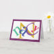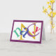 Personalized note card with the name "Nancy" spelled out in colourful letters, playfully arranged. The background is a dark violet. Blank inside.