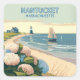 Nantucket Beach Hydrangeas Lighthouse Boat Retro Square Sticker