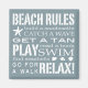 White graphic lettering on a faded denim blue background displays the rules of the beach - as if we needed reminding! But just in case, refer to this magnet when you need a little push to relax, swim, or build a sandcastle.