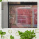 The abstract artwork on this Kitchen Towel by ZoeSPEAK is an original photograph of a storefront window reflection. The black window and door frames, along with a palm tree trunk, give the photo a modern look. The mostly neutral tones are interrupted by a salmon pink colour in a white window frame. There is also some gold lettering over the pink.