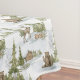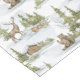 Ce tissu de table de Noël présente des cabines de rondins recouverts de neige, des cerfs et des ours dans la neige.