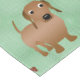 Un mignon dachshund rouge style dessin animé à l'expression amicale se dresse contre un arrière - plan de vert avec un empreinte de patte bleu centré entre quatre copies de l'image du chien. L'arrière - plan est parsemé de plus d'empreintes de pattes et d'os de jouets. Ce motif est carrelé de sorte qu'il se transfère facilement vers d'autres types de produits.