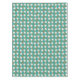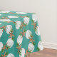 Nappe de Noël de plage avec grand motif dollars de sable et étoile de mer. Bleu aquamarine, avec un motif de couronnes composées de dollars de sable blancs et d'étoiles de mer brunes. Des brindilles de houx vert avec des baies rouges sont glissées entre les coquillages.