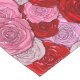 Illustration luxuriante des couches et des couches de roses entièrement fleuris en rouge, rose et lavande.