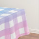 Cette nappe présente un joli design en plaid en vichy rose et bleu pastel.