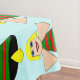 Cette superbe nappe présente un joli Ange de Noël aux cheveux blonds, aux yeux bleus et au grand sourire. Son corps est une cloche festive de couleur verte et rouge avec un clappeur jaune au fond.