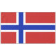 Le drapeau de la Norvège est un rouge avec une croix scandinave bleu indigo fimbriquée en blanc qui s'étend aux bords du drapeau ; la partie verticale de la croix est déplacée vers le côté hissé dans le style du Dannebrog, le drapeau du Danemark.