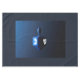 Un rêve moderniste bleu métallique contre un arrière - plan sombre et nocturne. Deux des lettres hébraïques trouvées sur un dreidel, une nonne et un shin, brillent brillamment.