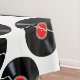 Un disque vinyle LP cassé avec un étiquette rouge et un cercle de touches de piano sur un arrière - plan blanc.