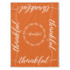 Habille ta table Thanksgiving avec ce design "Thankful" avec un script moderne. Texte répété "plaisant" et illustration de la couronne d'automne au centre. Dégustez vos invités avec un chiffon à thème. La couleur orange brûlée moderne peut être changée en couleur de votre choix à l'aide de l'outil customiser plus loin.