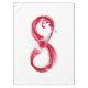 Infinity symbole of continuous stream of red pouring into glass glass glass on white background.