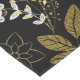 Intricate floral pattern with gold and white branches, leaves, and flowers on a black background. The design feels elegant and sophisticated.