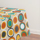 Cette nappe à motif rétro branchée des années 1970 présente des cercles de marron, de bleu turquoise, de blanc et deux nuances d'orange. Vous êtes sûr d'être un accrocheur sur votre table !