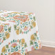 This tablecloth has a floral talavera style tile design. Colors include blue, yellow, pink, white and coral.