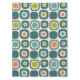 A retro-inspired grid of rounded squares, each cell featuring concentric shapes in teal, orange, chartreuse green, turquoise and beige. The outer dark teal squares anchor the composition, while the varied inner shapes add rhythmic contrast and visual warmth. Set against a soft beige background, the pattern evokes mid-century modern design with its bold colors, geometric repetition, and nostalgic charm—perfect for textiles, wall art, or vintage-themed decor.