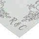 Améliorez votre décor mariage avec cette élégante nappe de taille moyenne, avec un design sophistiqué en nacre avec les initiales du couple dans chaque coin et une bordure fleurie du coeur dans une belle teinte lilas et gris clair. Personnalisé avec un monogramme, il ajoute une touche unique et raffinée à votre célébration. Parfait pour créer un cadre élégant et inoubliable.