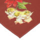 Noël Dancing Baby Angels accrochés à une fleur de Poinsettia sur un arrière - plan rouge pour cette nappe de fête de vacances.