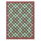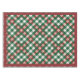 Nappe de jour férié ou de Noël en plaid rouge, vert et blanc avec garniture rouge.