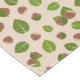 Une nappe avec un motif de noisettes et de feuilles verts sur un arrière - plan brun clair : un joli cadeau pour une personne qui vient de déménager ou pour votre décoration maison!