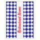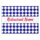 Cette nappe a un motif en damier bleu et blanc. Un script rouge est au centre. Vous pouvez modifier le texte pour afficher le nom de votre restaurant.
