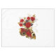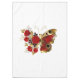Papillon de fleurs aux yeux de paon rouge à aile texturée rouge, décoré de composition de roses rouges, artistiquement peints avec des tiges dorées et feuilles sur arrière - plan blanc.