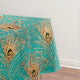 Jolie parties scintillant or plumes paon motif sur arrière - plan aqua.