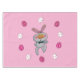 Ce tissu de table est rose avec un mignon lapin blanc au milieu avec des joues roses au nez orange donnant un signe pouce vers le haut entouré d'un cercle d'oeufs de Pâques teints rose et blanc.