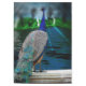 Queue bleue et verte brillamment coloré de paon avec le paon se tenant sur un bord de mer numérique.