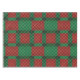 An Elegant Tablecloth Of Colorful Red And Green Plaid Squares With a Gold Topping For The Christmas Holiday Decor