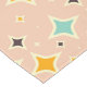 Retro geometric pattern with teal, orange, and black star-shaped diamonds on a peach background. The design conveys a playful, vintage feel.