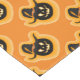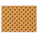 Couvercle de table de nappes et décoration d'intérieur accessoire avec Sorcière Citrouille brillante sur orange dessin arrière - plan image par TheFabricSeal à Zazzle avec une silhouette noire noircie d'un citrouille sorcier déplaisant portant un casquette de cime conique pointu de sorcière et bracelet avec feu flamboyant blanc chaud orangé chaud flamboyant derrière elle dans le arrière - plan et à travers les yeux citrouilles sculptés, le nez et la bouche.