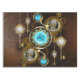 Turquoise lenses with antique watch with brass gears and golden keys on rusty, brown background. Steampunk style.