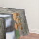 Cette superbe nappe présente une photographie magnifiquement détaillée de 4 petits tabourets jaunes émergeant d'une bille dans un parc. L'arrière - plan est floue et les champignons sont photographiés au niveau, donc vous voyez le monde de leur point de vue.