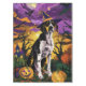 Embrassez l'esprit d'Halloween avec ce design enchanteur avec un chien mignon dans un casquette sorcier entouré de citrouilles sculptés. Parfait pour ajouter une touche de charme éffrayant à vos célébrations festives.