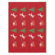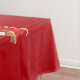 Nappe de Noël avec une licorne tirant Père Noël traîneau à vers un sapin décoré de billes d'argent. La licorne a une crinière et une queue rouges et dorées et le traîneau porte Père Noël avec de nombreux cadeaux. L'arrière - plan est rouge.