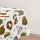 A Unique Vintage Christmas Tablecloth Patterned In Stocking, Trees, Wreaths, Ice Skates, Candles And Gifts.