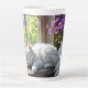 Napping White Cat and Purple Flowers Personalized Latte Mug
