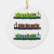 Fun graphic for narrowboat fans features three narrowboats with river pilots in bright canal boat style designs.