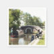 An art design of a narrowboat approaching a lock and a man fishing. Canal boats, known in the UK as narrowboats, were originally used to transport goods around the country. They are now used mainly for leisure and attract people from all over the world to enjoy our rural countryside. These boats look very pretty with their brightly coloured cabins, traditionally blue, red or green. Flowers and castle designs also adorn the more traditional boats.