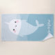 Narwhal and waves cute kawaii cartoon beach towel