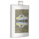 The product is a good size and came exactly as it was pictured. The lid is not attached to the flask, which could be dangerous on drunken nights... The print came out surprisingly well and looks very sharp. Would definitely recommend.