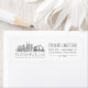This label features a stylized illustration of the city's unique skyline with its name underneath. Besides this is a spot for your address information in a matching open-lined style of text.