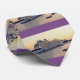 Interspersed with purple stripes, a nautical scene features Nassau harbour at daybreak, where a quantum class cruise ship has arrived for the day, making a special tie for the gentleman who appreciates all things nautical.