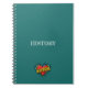 This customizable green notebook features a comic-style heart decorated with the name "Natasha". You can customize the default text. This is a great back-to-school gift.
