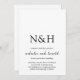 Modern wedding invitation featuring a simple and minimal black and white design with your monogram in a bold font along with your names in an elegant handwriting script.