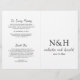 Programme de mariage plié moderne (imprimé sur papier de qualité moyenne et déplié) avec un design noir et blanc simple et minimal avec votre monogramme en caractères gras avec vos noms dans un élégant script d'écriture manuscrite et votre date de mariage.