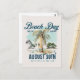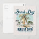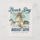National Beach Day is August 30th. Celebrate with this retro-poster style design with the beach, palm trees, surfboard, and a pelican.