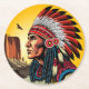 Native American Chief on wild Landscape Sunset Round Paper Coaster